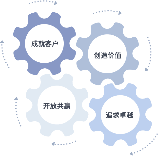 成就客户是一切决策的出发点,,,,创造价值是衡量所有工作的标准,,,追求卓越是Wanli万利做事做人的态度,,,,开放共赢是Wanli万利的格局也是最终的结果。。。。价值观的齿轮环环相扣,,推动着组织里的每个人不断向前。。